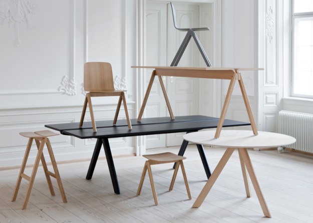 This chair by Ronan and Erwan Bouroullec, launched at Orgatec 2012 in Cologne, has a distinctly Scandinavian feel to it in its elegance and simplicity (it is for the Danish company Hay). The pronounced seam in the middle reminds me of an open book when seen in profile. The pairs of legs attach at the top creating an A-frame structure allowing it to stack. It is fabricated from oak and beech, and its inspiration comes from old wooden university trestle tables. The series also features tables (with the seam this time cleverly serving to conceal cable runs), benches and stools. It is designed as educational furniture, conceived for the University of Copenhagen, and it has something of the utilitarianism of the Bauhaus era, but in a refined, light and elegant form. Was the open-book profile intended? I don’t know, but I think it is a stand-out chair and would work in so many settings. What do you think? Will it make the cut?