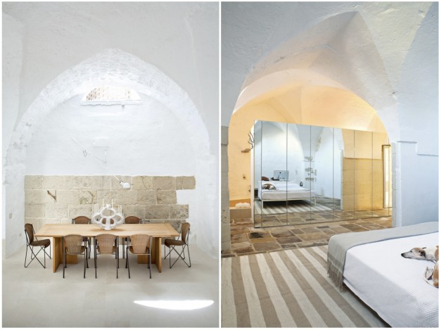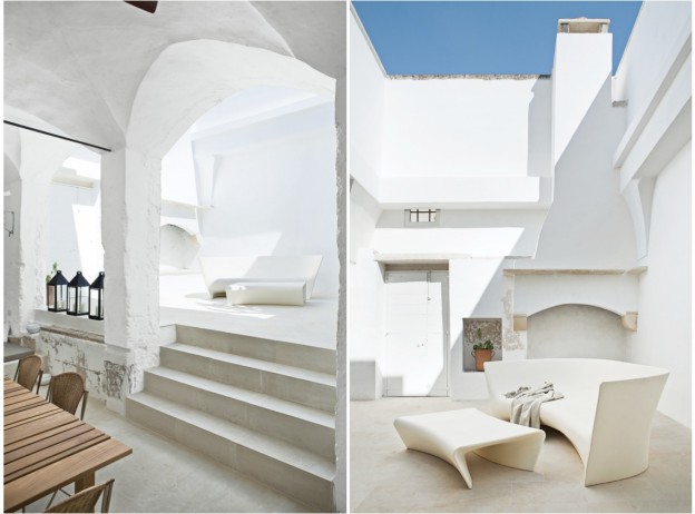 There is good reason this 17th-century oil mill in southern Italy looks more like a furniture showroom than an inhabited summer house. The dwelling is filled to the brim with the designs of the owners, the architects (and husband and wife team) behind Palomba Serafini Associati, who have together designed bathrooms, kitchens, furniture and lighting for some of the biggest names in Italian design: Boffi, Cappellini, Foscarini and Zanotta.