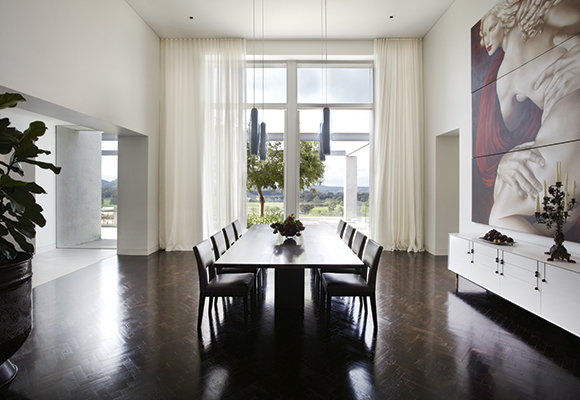 14. Black-stained wood, exposed brick and a contrasting diaphonous curtain by Beatrix Rowe Interior Design
