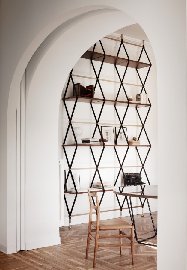 This apartment in Rome starts with strong architectural features – an intricate parquet floor, high ceilings and elegantly arched windows, framing a view towards the dome of St Peters. Because that is enough, the rest is kept simple. The arches are echoed internally, but also countered, by unembellished, rectangular openings.