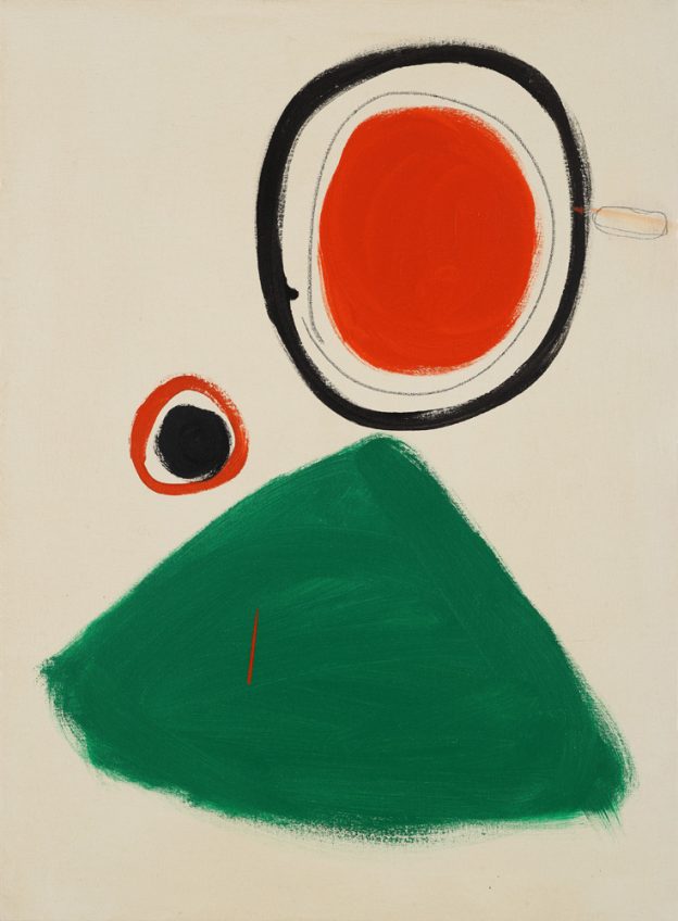 Her body of work is both abstract and figurative, with a palette of subdued colour – earthy tones and sky blues. Her abstract paintings are at once calm and energetic, with the occasional jolt of bold colour. Figures are naive and deceptively simple, drawn wth a bold, confident hand and economy of line. I see so many influences, not only the St Ives painters, but international modernists too – Picasso, Miro and the Cubists. I love the simplicity, composition and strong forms.