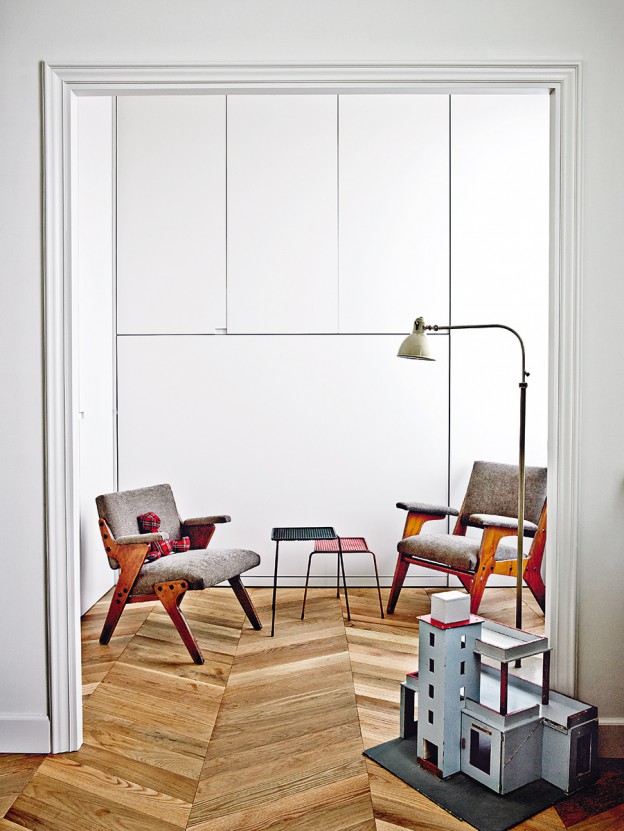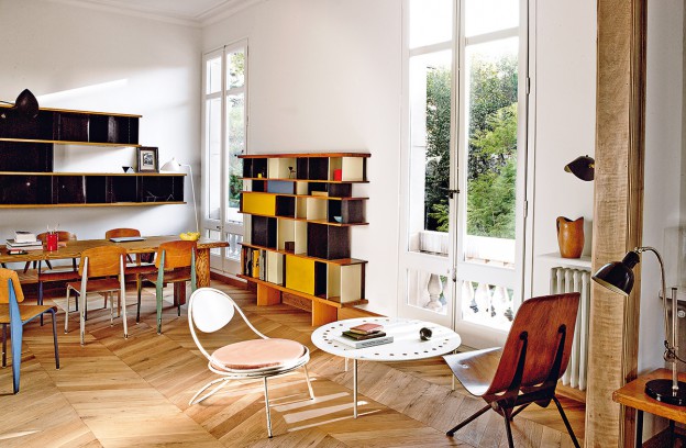 Classic pieces of furniture abound, including walnut Cherner dining chairs, Fritz Hansen marble-topped dining table, Charlotte Perriand stools, Bruno Mathsson daybed, and other vintage Scandinavian pieces. Marble plinths, Georg Jensen silverware and bold, modernist artwork complete the elegant, understated look. I’m moving in.