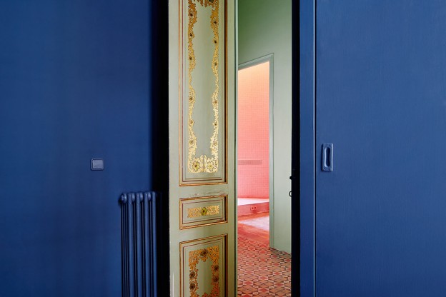 Using elements characteristic of the fashion line – geometry and colour blocking, for example – the hotel has an unmistakably Italian aesthetic. Maintaining the original herringbone wood floors and plaster walls, the look is updated with intense hues and jewel tones of blue and green. The interiors were conceived by Milanese Dimore Studio and architect Marco Costanzi, who have created beautiful details using sumptuous materials.