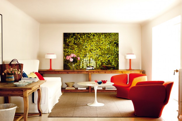 Classic Italian and modernist pieces abound, too; from a daybed by Gio Ponti, Murano glass chandeliers by Venini, art by Lucio Fontana and Josef Albers.