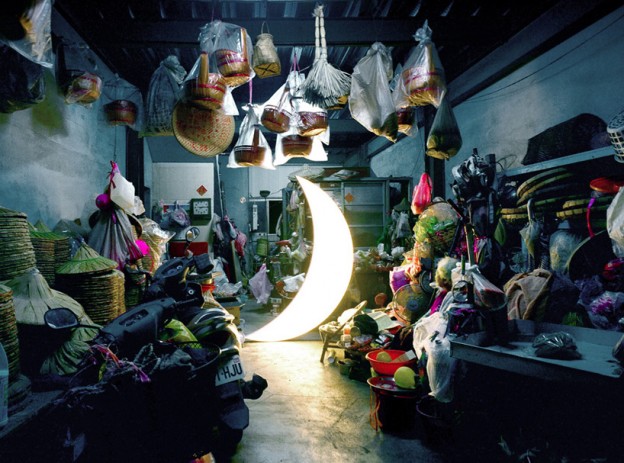 Avant-garde artist Leonid Tishkov has been travelling around the world with his mobile art installation ‘private moon’. The project captures a series of photographs of himself with a large illuminated crescent moon, taken at various locations across China, New Zealand, Taiwan, the Arctic and France.