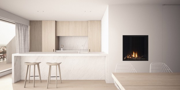 Located in a typical, turn of the century apartment building in Barcelona is this vibrant interior. Little has been done to alter the layout over the three floors, and views through to the outside are not evident. However, clever cut outs have been created within, offering unusual angles and vistas through from one level to the next.