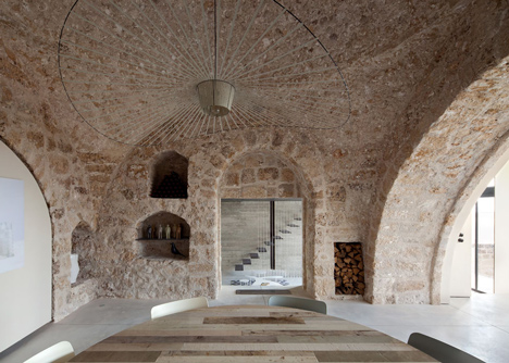 In the ancient port city of Old Jaffa in Israel, a building hundreds of years old has been stripped of all extraneous elements to reveal the original structure of broken clay and shells, vaulted ceilings and huge archways. These textures and materials have been left expressed, and contemporary elements added to allow the home to respond to modern life.