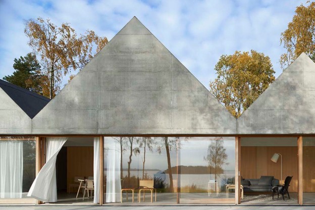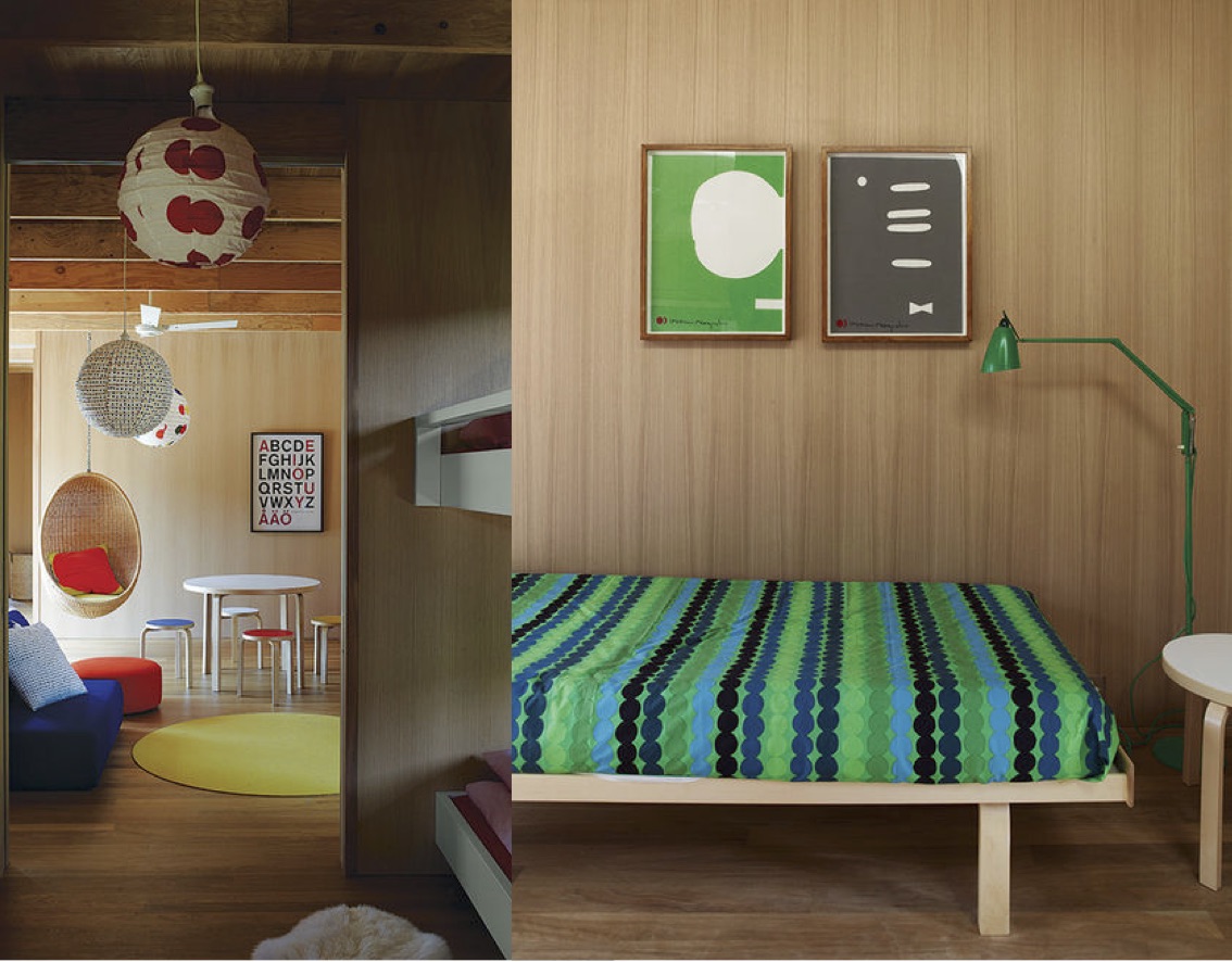 Everywhere, fully retractable windows open rooms up to the outside, with clerestory windows bringing even more light in. The simplicity of the design is underpinned by the simple lines of the Scandinavian furniture – Alvar Aalto daybed and stools, Hans Wegner Wishbone chairs, Nanna Ditzel hanging rattan chair and Marimekko textiles. The perfect weekender.